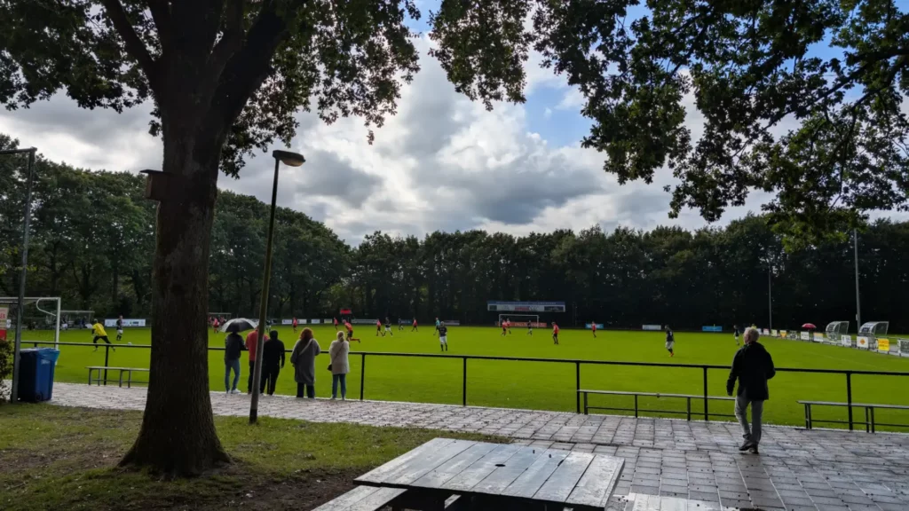 Tijdens de rust werd in het clubhuis aandachtig gekeken naar de verrichtingen van de Nederlandse atletiekploeg op de 4×400 meter mix, die een geweldige zilveren medaille won.